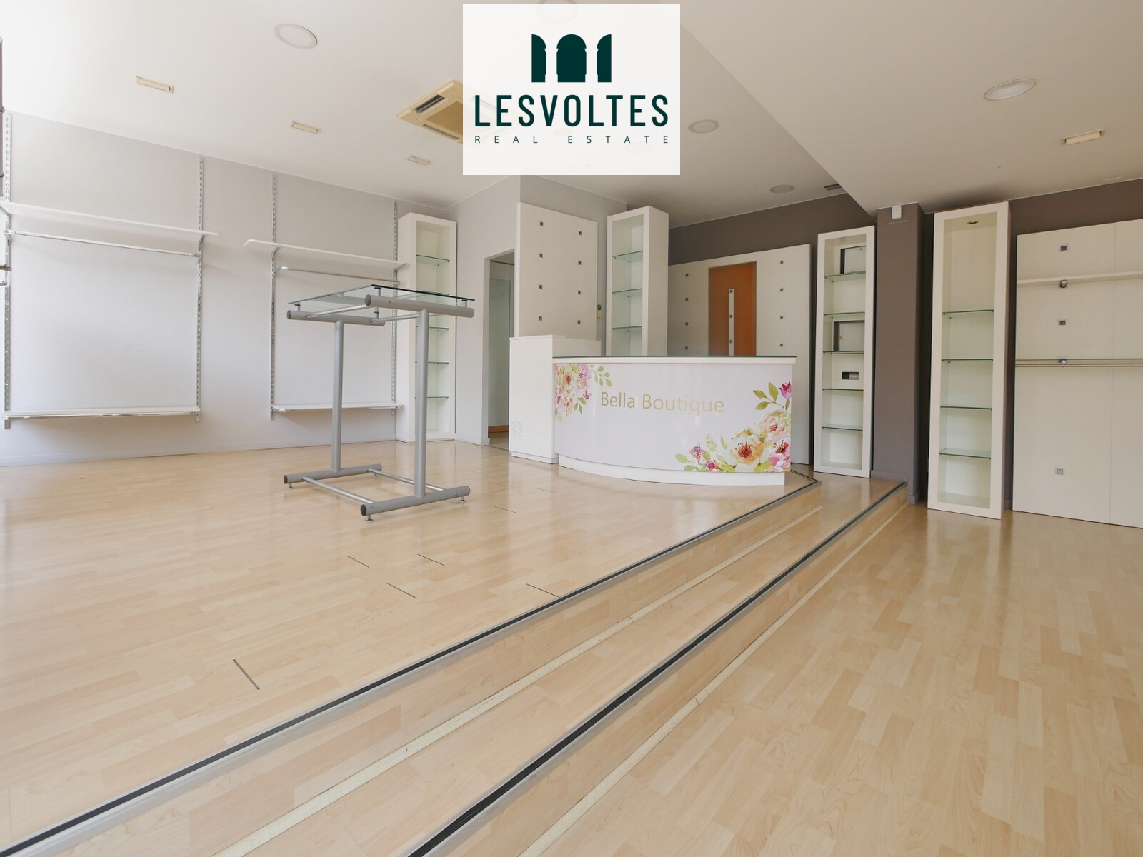 Gran aparador amb molta visibilitat, espai interior totalment diàfan i magatzem a la planta soterrani amb 1 lavabo.