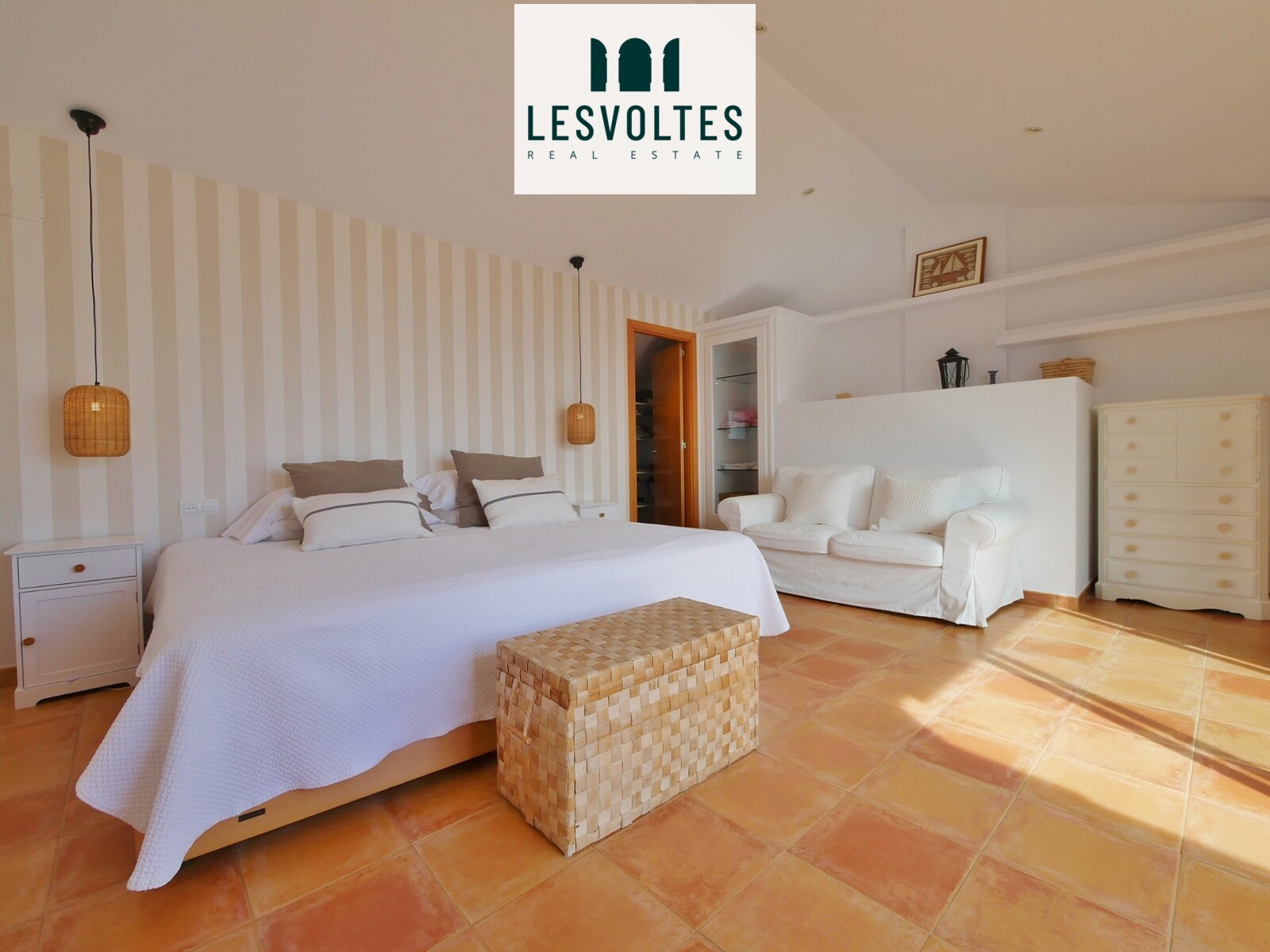 A la planta sotacoberta, hi trobem un espectacular dormitori en suite amb vestidor i bany amb plat de dutxa, amb una agradable terrassa solàrium amb vistes al Mediterrani.
